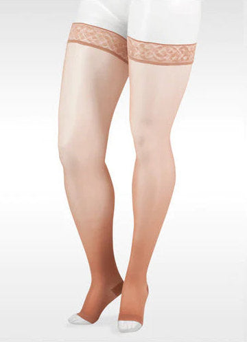 Juzo Naturally Sheer Thigh High, 30-40 mmHg, 5 cm Silicone Band, Open Toe (2102AGSB)