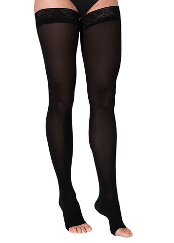 Sigvaris 841NO Soft Opaque, 15-20 mmHg, Thigh High, Grip Top, Open Toe