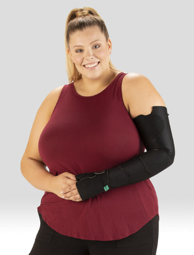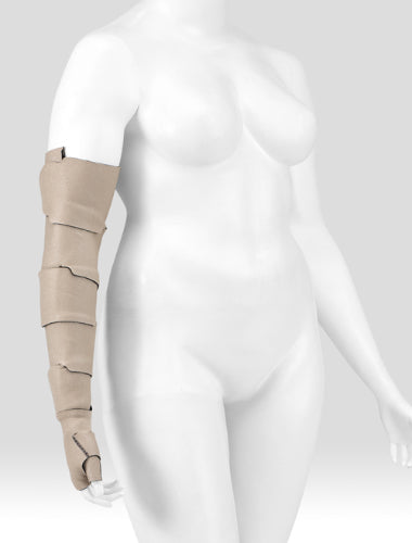 The Juzo Compression Arm Wrap offers high working pressure (30-60 mmHg) in a versatile garment that features a reversible design, an inner liner to help with donning, easy pull tabs, minimal overlying straps, and special notches that resist gapping and bulk. The Juzo Arm Wrap can be worn with the Juzo Compression Hand Wrap to treat lymphedema.