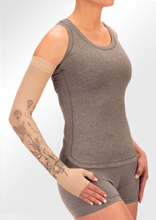 Juzo's Printed collections are made from their softest material line the 2000 Soft. Perfect for those who like to spice it up a bit. This seamless, comfortable sleeve helps to prevent or manage mild to moderate upper extremity lymphedema. Gauntlet sold separately.